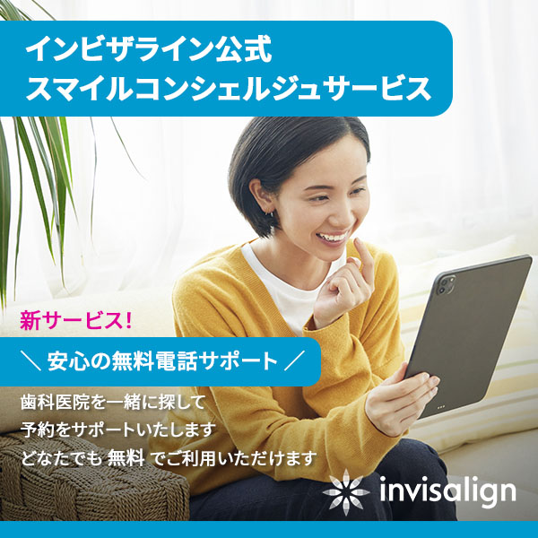 https://www.invisalign.co.jp/consumer/invisalign-smile-concierge※ スマイルコンシェルジュは満18歳以上の方が対象のサービスです。※ 予約対象歯科医院は、当社の歯科医院検索ウェブサイトに掲載されている施設のみとなります。(歯科医院検索ウェブサイト:https://www.invisalignjapan-find-a-doctor.jp/invisalignjapan/top?account=invisalignjapan)インビザライン・ジャパン株式会社