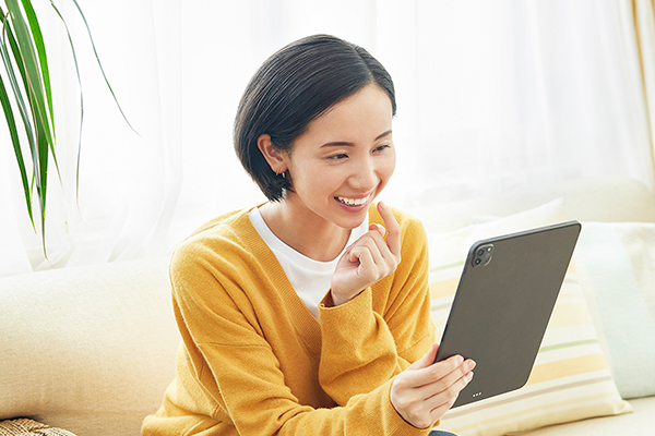 お持ちのスマートフォンやタブレット端末で、あなたの笑顔の写真を撮影するだけで、歯並びが変わった場合の新しい笑顔のイメージを作成。